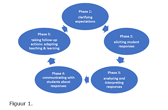 Dat begint bij een actieve houding van leerlingen. Maar hoe krijg je dat voor elkaar? En welk gedrag willen we eigenlijk zien bij de leerlingen als de leraar formatief evalueren in de klas vormgeeft (figuur 1)? En wat moet de docent doen om dit gedrag in de klas uit te lokken?